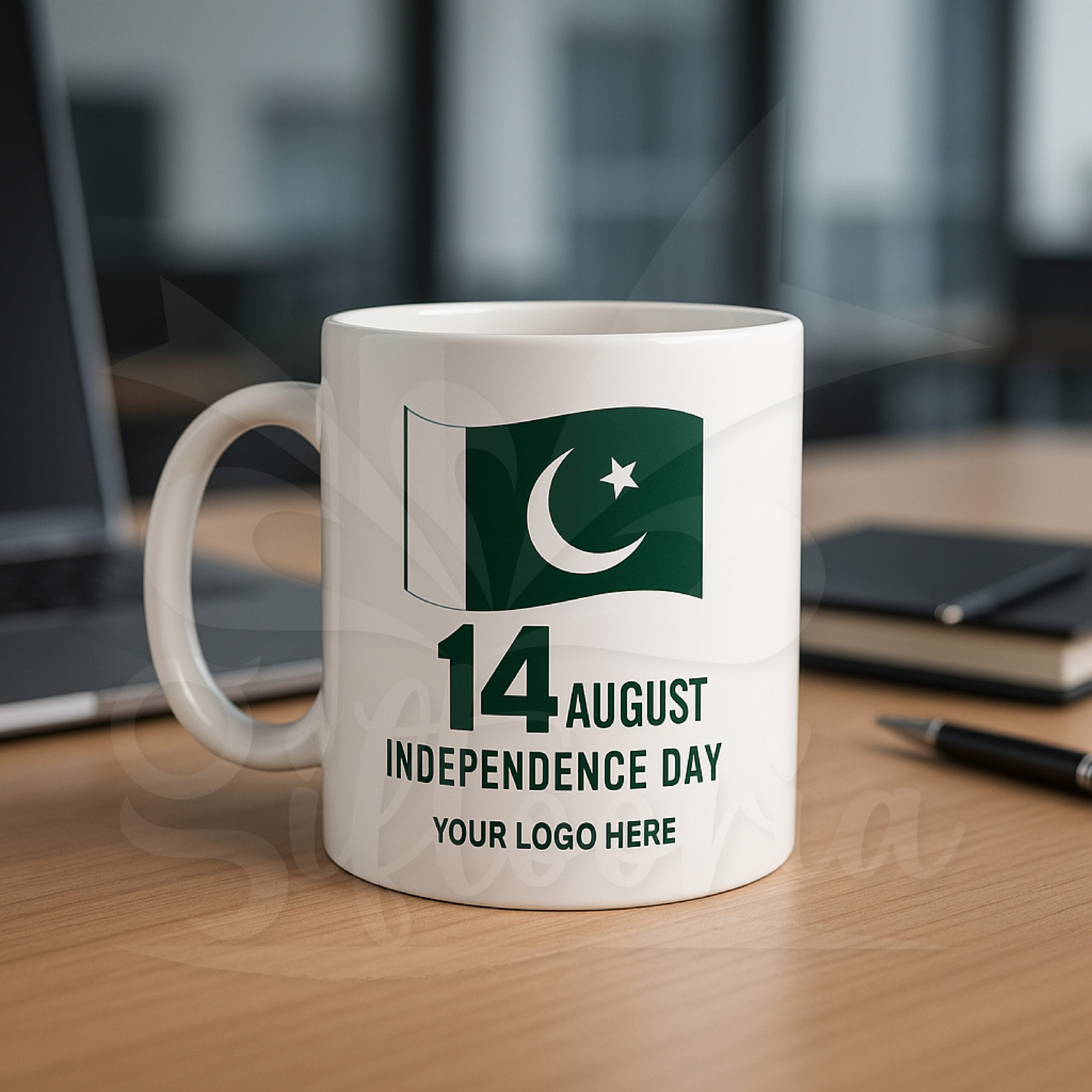 A patriotic mug with custom branding — ideal for 14th August gifting to employees and clients.
