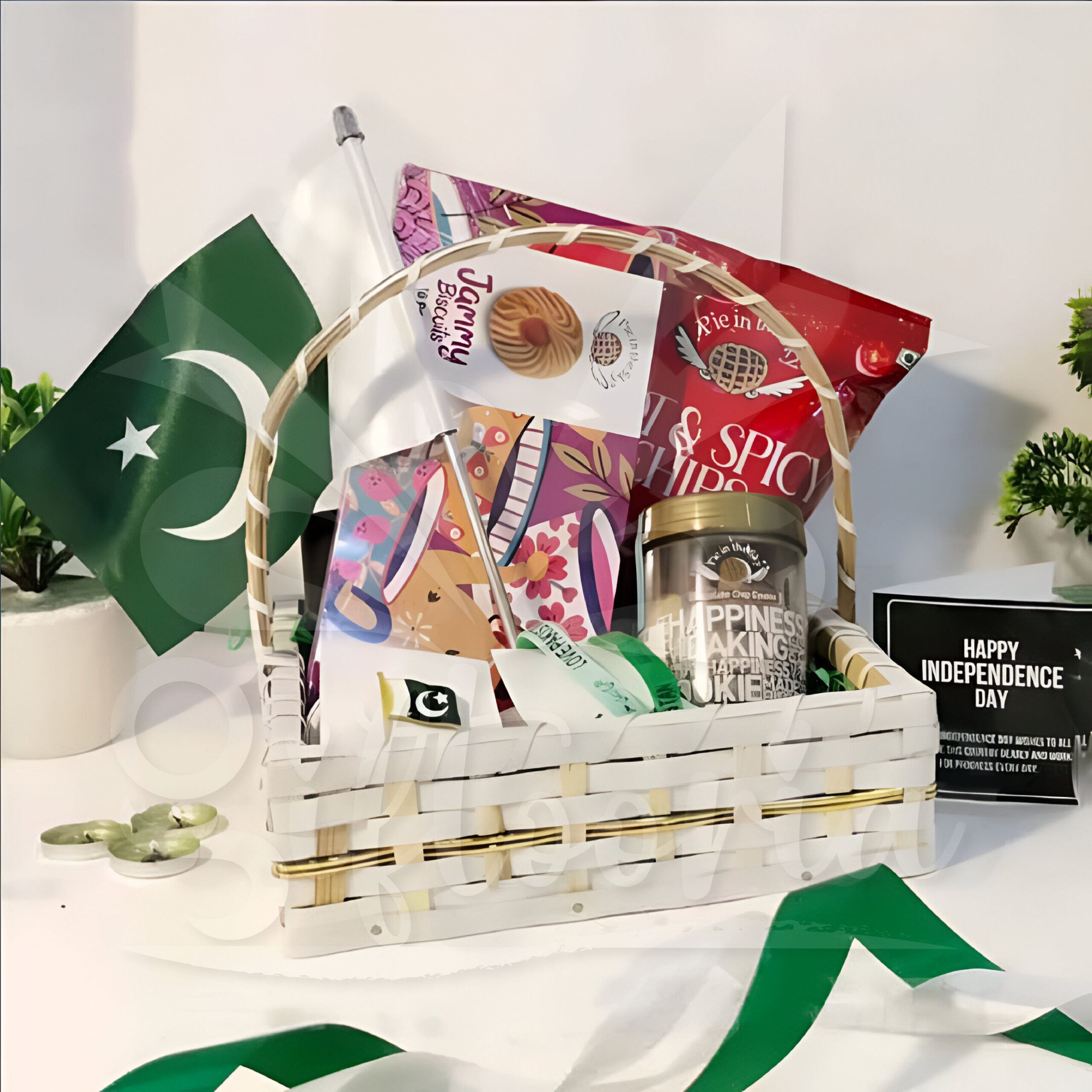 Every item is handpicked and packed with care inside a high-quality white and gold woven basket. From delicious snacks to themed Independence Day accessories, this hamper delivers joy, festivity, and a proud reminder of our nation’s strength.